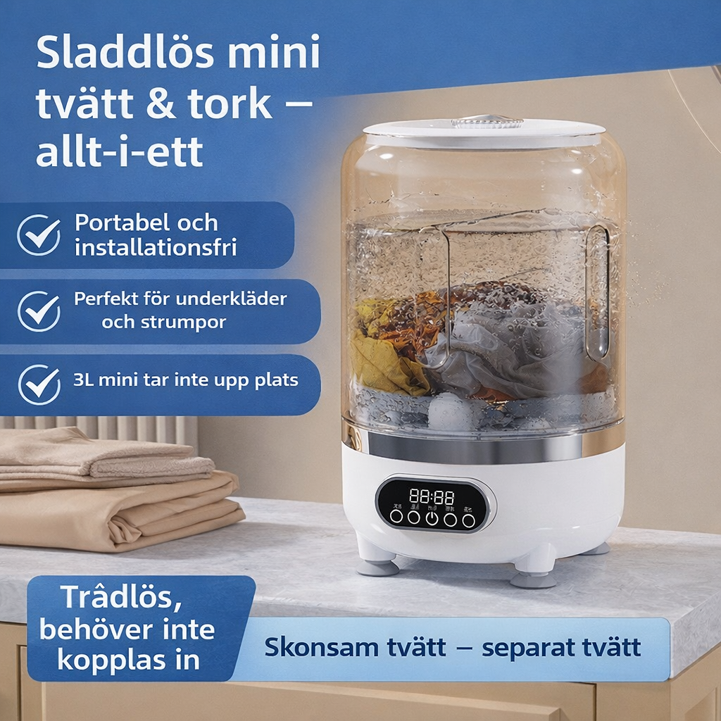 Tvätt ska inte vara krångligt, ta plats eller stjäla din tid. Tvätti Wash är skapad för dig som vill slippa handtvätt och i stället få en smidig lösning som förenklar vardagen. Liten, smart och alltid redo när du behöver den.